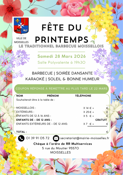 La fête du Printemps aura lieu le samedi 28 mars 2026 à la salle Polyvalente.